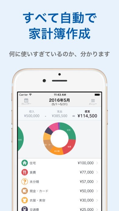 支出項目を自動的にグラフ表示することができます。支出管理がラクになります。