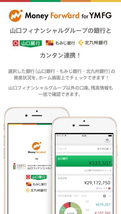 山口銀行、もみじ銀行などの銀行口座管理がアプリで可能です。他の都市銀行口座やサービスなどの登録もでき、家計簿としての機能も期待できます。わざわざ毎回個別のサイトにログインする必要がなくなり、お金の管理の手間か省けます。
