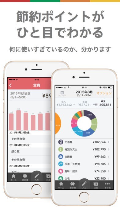 一か月にどれくらいのお金を何に使っているのかを見直すきっかけを与えてくれます。単に金額を示すだけではなく、グラフで支出内容を可視化してくれるためより直感的に理解できます。