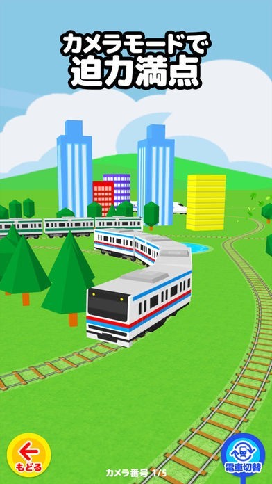 カメラモードでは、色々な視点のカメラから電車の姿を追いかけます。