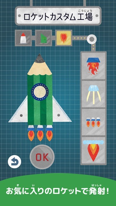 「宇宙はっけん隊」には様々なロケットが用意されていますが、お気に入りが見つからない場合は自分でロケットを作ってみましょう。ロケット工場でパーツからロケットを作ることができます。