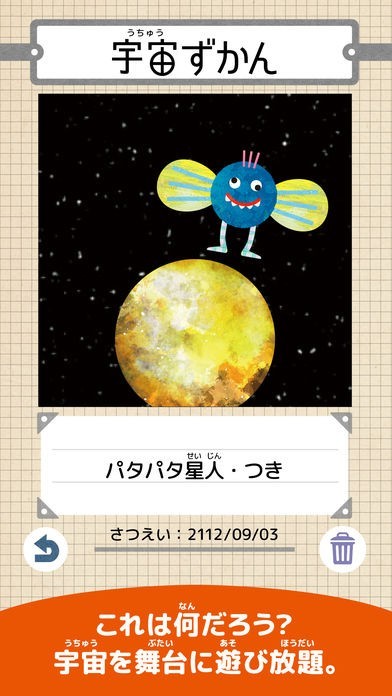 画面端に表示されているカメラマークをタップすれば、カメラモードに移行。宇宙人との歴史的な出会いを撮影しましょう。撮影した写真は後から図鑑で見返すこともできます。