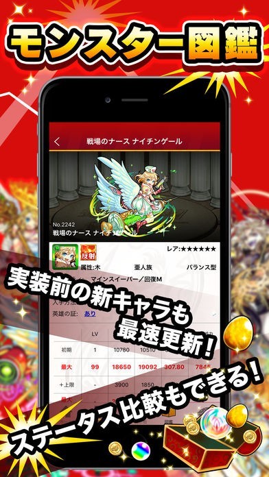 モンスター比較ツールを搭載しています。モンスター同士のステータスを比較できるようになっており、クエストに出撃させるモンスターを選ぶ際にも便利です。「神化」と「進化」の能力比較も行えます。