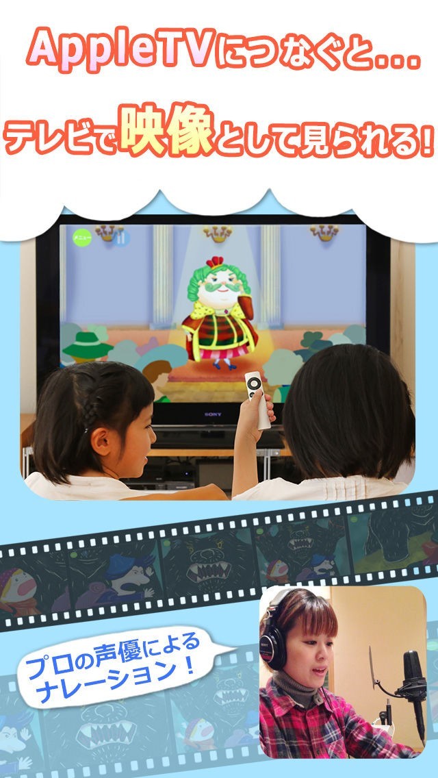 ●AppleTVにつなぐと、テレビの大画面で、"絵本ムービー"を家族みんなで視聴できます!