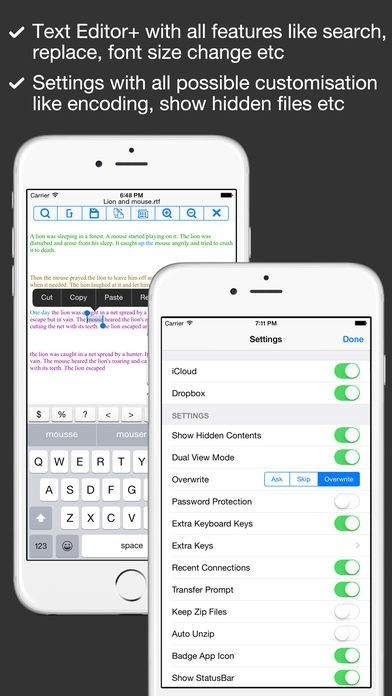 - Edit Rich Text and Plain Text files with built-in Advanced Text Editor (.rtf .txt, .text, any text file)
