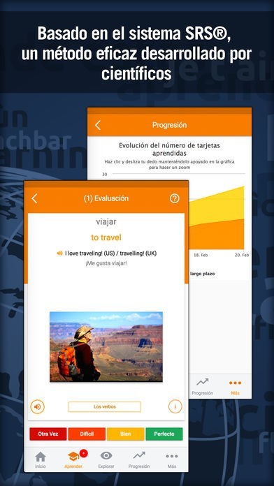 ► Sesiones de aprendizaje variable según tu tiempo libre. Puedes practicar las tarjetas aprendidas dedicando de 2 a 30 minutos.