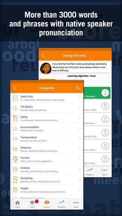 Whether you are starting Brazilian Portuguese from scratch or you already know the basics, MosaLingua is adapted to suit your language needs. It's like having your own private tutor in your pocket!