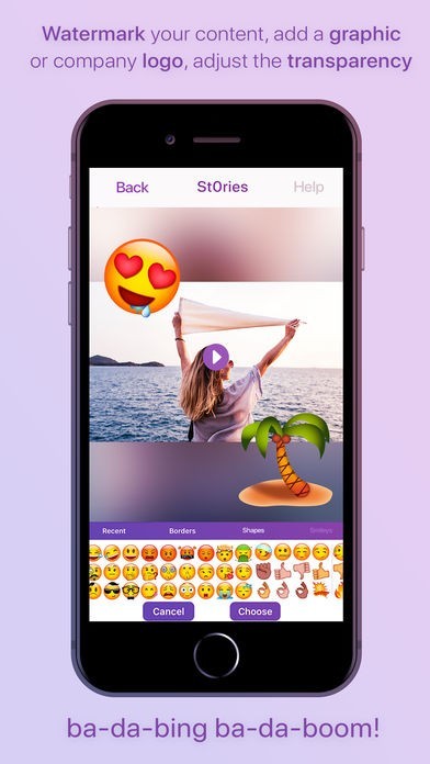 15秒サイズの動画を組み合わせてショートムービーが手軽に作成できます。また、ムービーの中にコメントや絵文字などの挿入も可能であなたのショートムービーを華やかにしてくれます。
