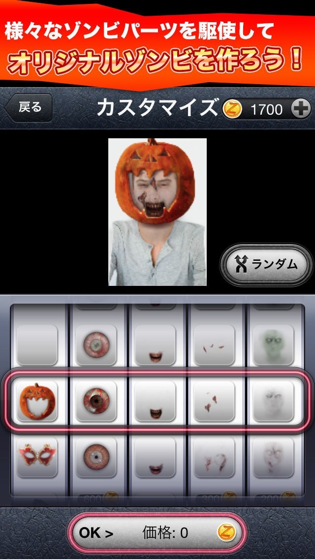 このアプリにはカスタマイズ機能が搭載されています。様々なパーツを組み合わせるだけで簡単に新しいゾンビを制作することが出来て、実際にカメラ機能で使用することが出来るのでお勧めです。