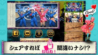 忍者のダンスムービーに自分や友達の顔写真を合成して楽しめる