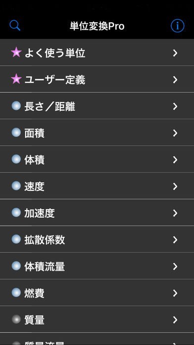 単位変換Proでは長さや重さだけではなく、カロリーや燃費、力に関する単位や輝度、照度、データ量、データ通信速度など非常に幅広いジャンルの単位変換が可能となっています。