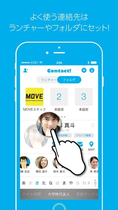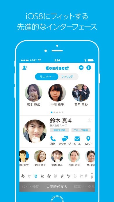 App Storeより引用Contact!は全く新しいUIとサクサクの操作感が楽しい、新感覚の連絡先アプリです。