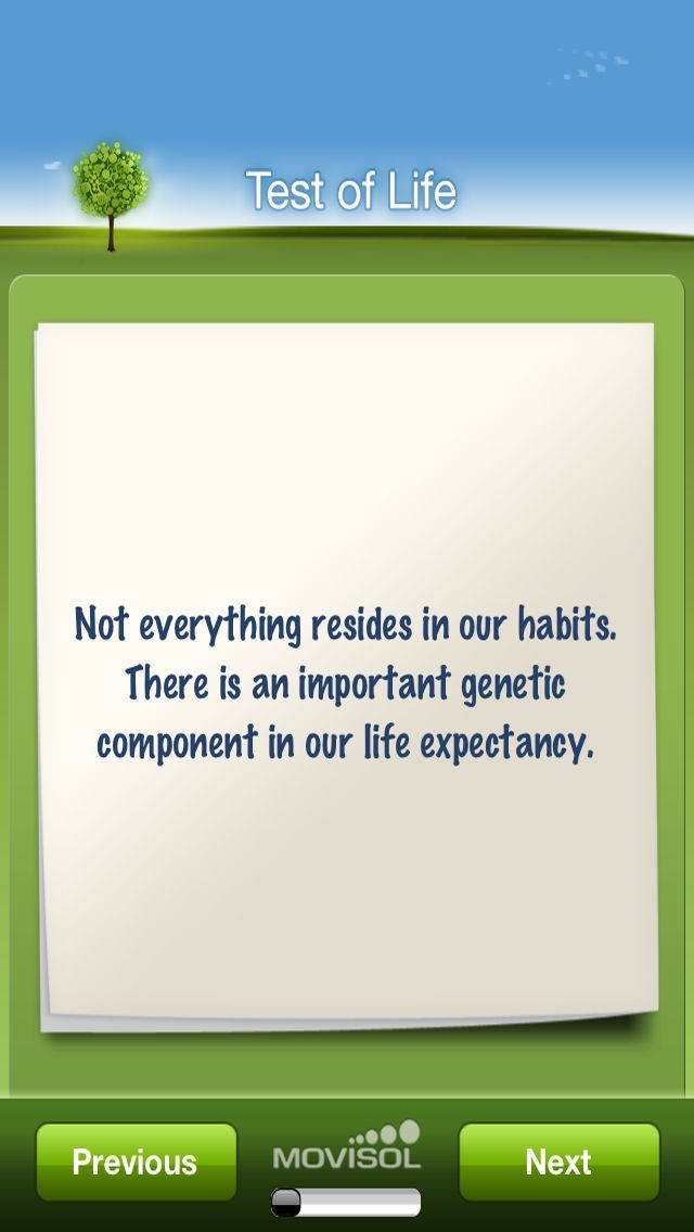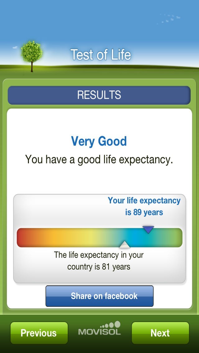 アプリケーションをサーフするときに、寿命テストの質問に異なった回答をすることで、各習慣があなたの寿命に、どのような影響を与えるかを知ることもできます。