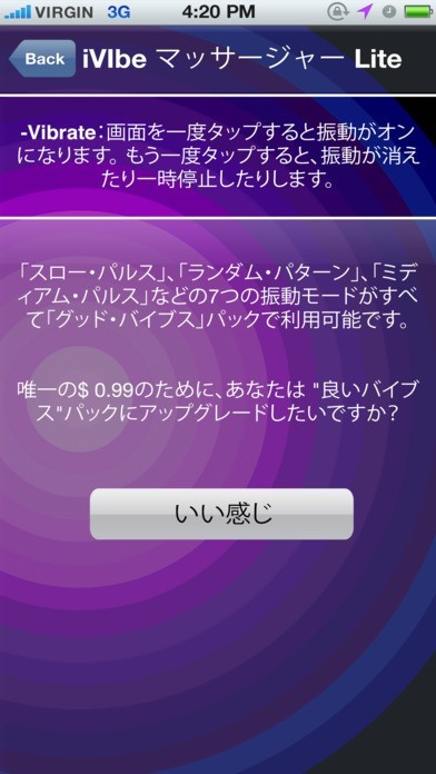 iVibeマッサージライト:振動、マッサージ、スムージング、リラックス、無料バイブレーターアプリの特徴・編集部レビュー