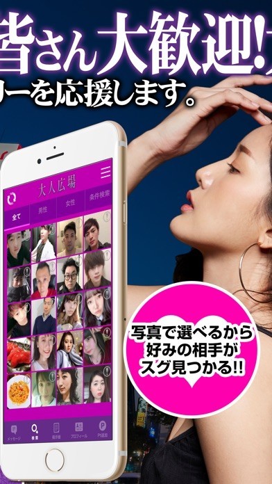 画像検索が手軽で良いですね。直感的に自分好みの異性が簡単に分かる。