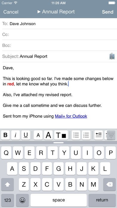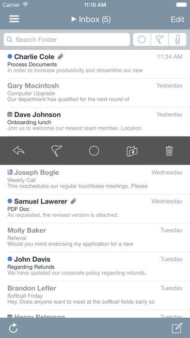 メール作成時には署名を選んで入力できたり、受信したメールはフォルダ分けができます。またアプリ内で添付ファイルを確認できたりと、仕事用途でのメール送受信がより効率的になります。