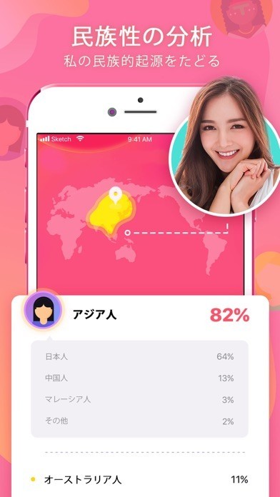 加齢変化をAIが完全シミューレートするので、十年後、二十年後の自分の顔を知ることが可能です。また、パパとママの顔から赤ちゃんの顔を予測したり、手相を鑑定したりとスーパーマルチな内容となっています。