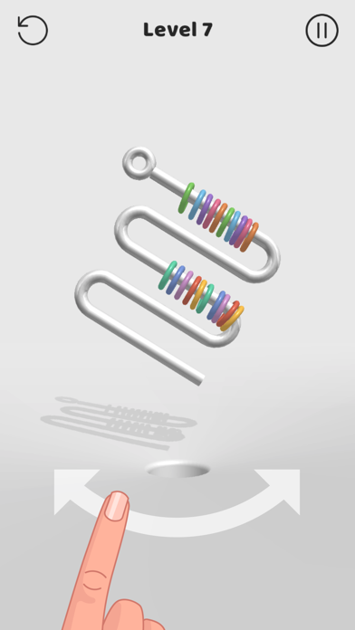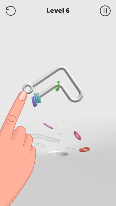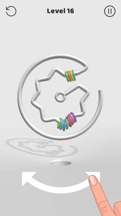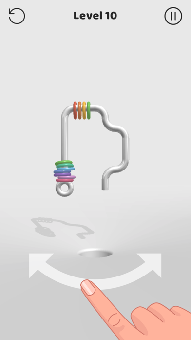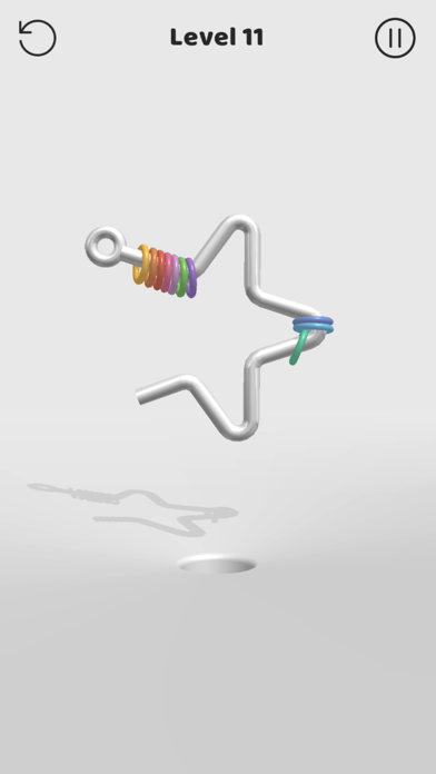 App Storeより引用In Off The Hook, your goal is spin the metal shape around, and aim it so the colorful rings end up in the hole. First, you have to analyse the shape in front of you - some of them are tricky and you need to be clever to solve them.