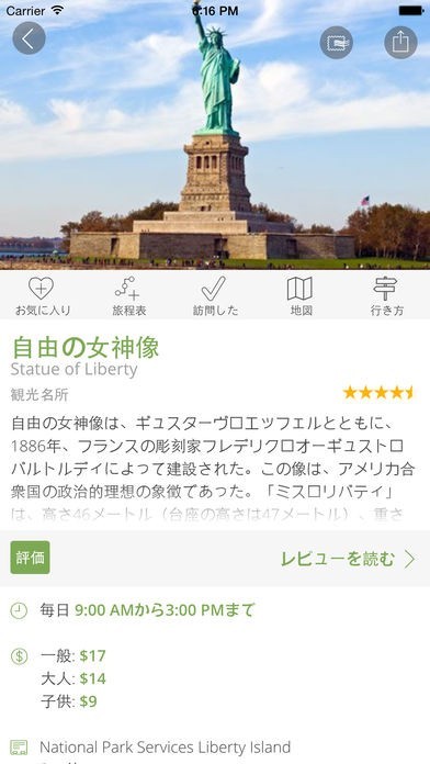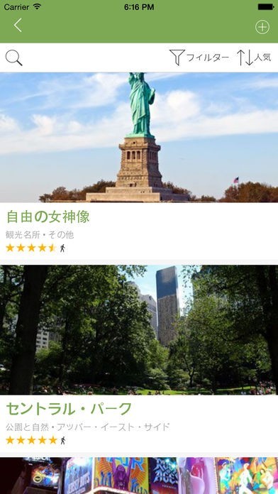 ニューヨークの観光スポットを検索でき、ニューヨークを楽しめました。