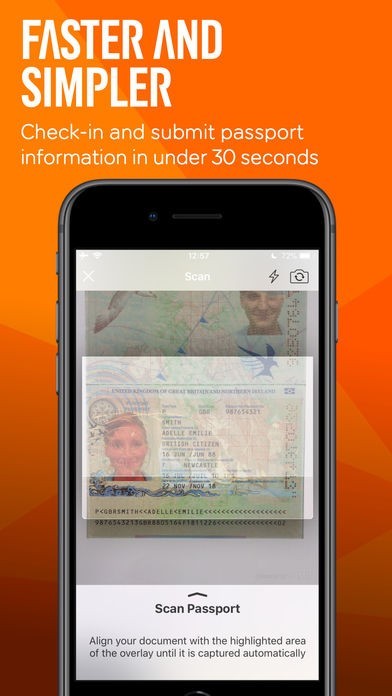 Add passport details in seconds by scanning your passport with your phone camera, checking in is now faster than ever before.