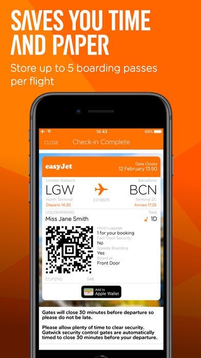 Store up to five boarding passes per flight which will be available offline so you don’t need a data connection, no more searching for a printer or queuing at check in desks!