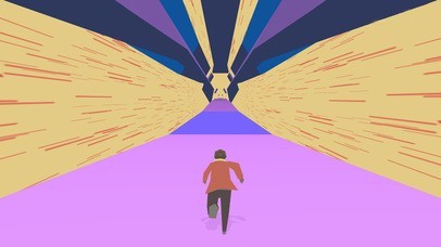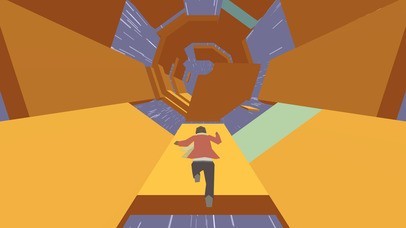 プレイキャラは画面奥を目指しひたすら自動で床の上を走り続けますが、多角形のトンネルのようなステージを採用することによって放射線のスピード感を効果的に表現しています。