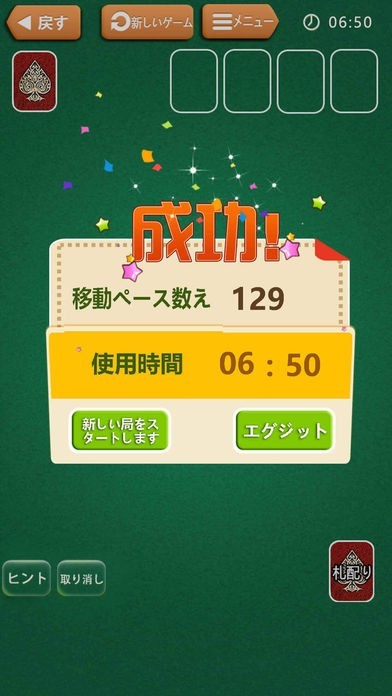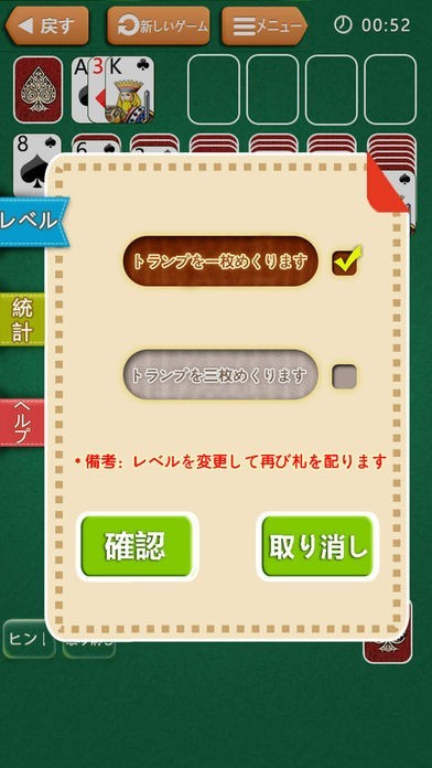 このゲームではソリティアが苦手な人でも、得意な人でも遊べるように、難易度を自分で変えることができます。少しずつ難易度を上げて、レベルの高いソリティアをプレイしてみましょう。