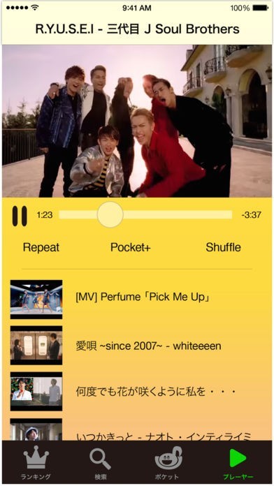 ●Pocket機能で気に入った曲をワンタップでマイリストに追加できるので、簡単に再生リストを作れます。