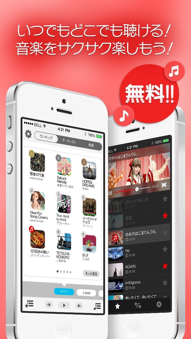 JPOPを中心に無料で聞ける音楽が豊富。バックグラウンド再生ができるのも良いです。