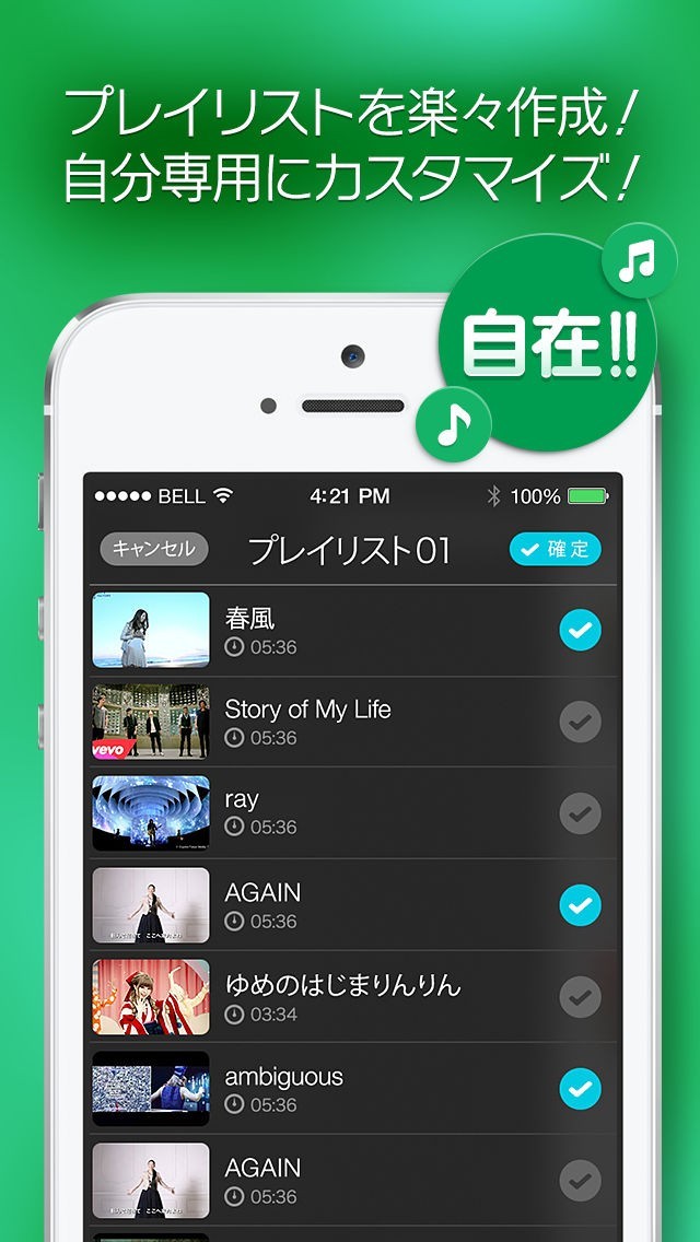 YouTubeの動画を使って自分だけのオリジナルプレイリストを作成することができるようになっているので、スマートフォンでいつでも好きな動画を簡単に再生することができます。