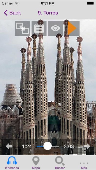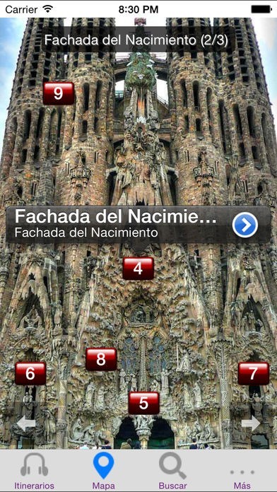 App Storeより引用La audioguía MUSMon.com de la Sagrada Familia le cuenta de una manera clara, desenfadada y rigurosa este icono de Barcelona, obra maestra del genial Antonio Gaudí. Le guía cómodamente, a su ritmo, mediante mapas interactivos, imágenes y le desvela sus secretos a través de 65 minutos de locuciones profesionales, haciendo su visita más divertida y memorable.