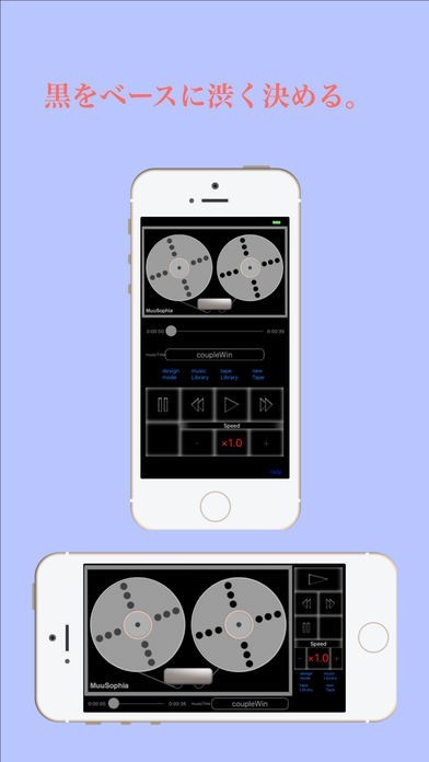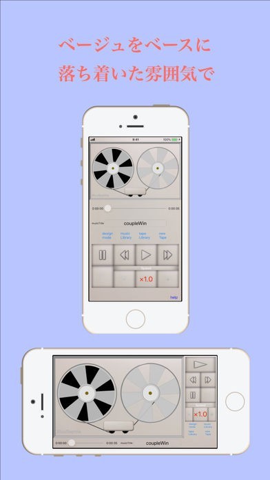 オープンリールテープ風音楽プレーヤーはその名の通りオープンリールデッキのアニメーション動作を楽しみながら音楽を楽しめるプレーヤーアプリです。音楽だけでなく雰囲気も楽しむことができます。