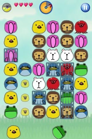 「アニマル・レスキュー」は3匹の動物をくっつけて、オリから助けるパズルゲームです。