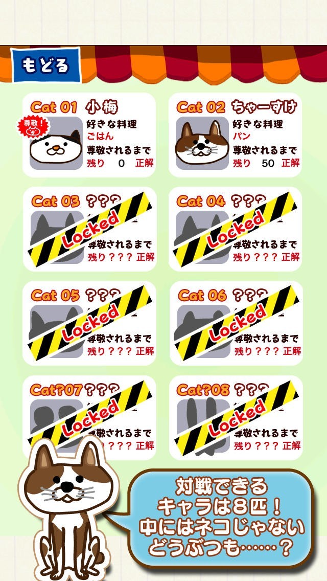 対戦したキャラクターがネコリストに載っていく