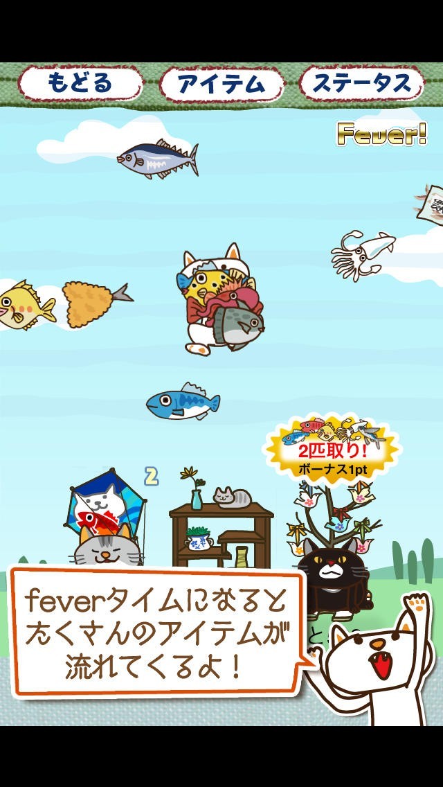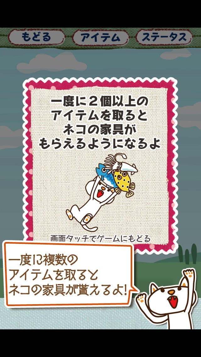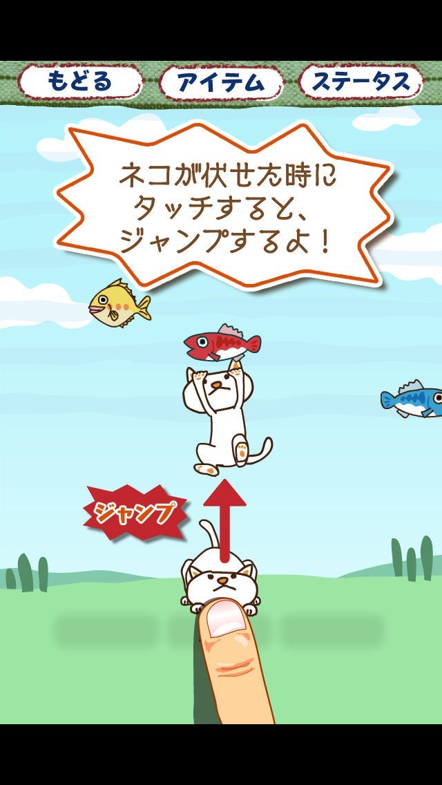 「ネコがとぶ」は、ネコを空に飛び上がらせ、アイテムを取ることで