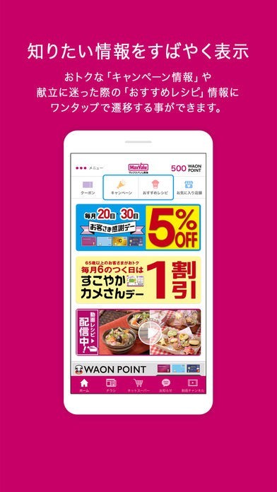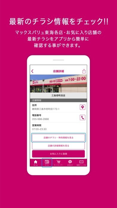 最寄りのお店をお気に入りとして登録することで、そのお店のお得情報やクーポン、チラシを優先して配信してくれる機能が搭載されています。よく利用する店舗のお得情報をゲットして賢くお買い物することができる公式アプリです。