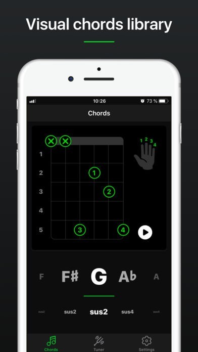 複雑なコード進行も、指の動かしかたから弦の抑え方などを視覚的に勉強することが可能です。ひとつのミュージックの中でもこの視覚的サポートが可能なので短時間で習得することが出来ます。