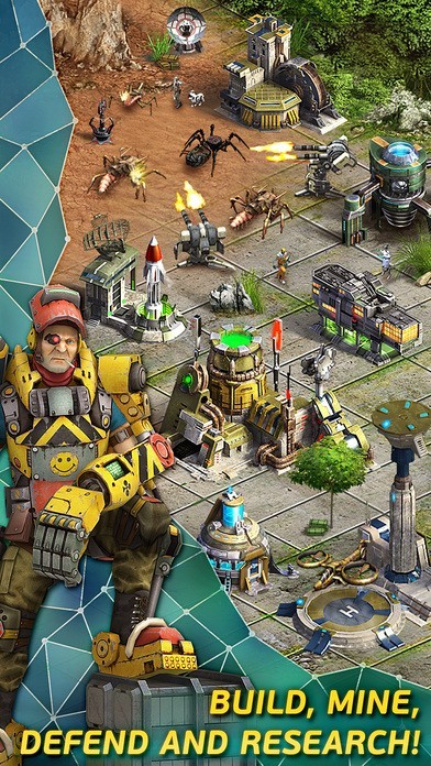 不時着してしまった未知の惑星で拠点を作るためのRPGパートと、冒険したりモンスターを撃退するRTSパートの両方を同時に楽しむことができるゲームアプリとなっています。