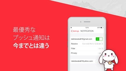 メールの受信をプッシュ通知でお知らせしてくれる!