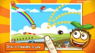 トランポリンで不思議なキャラを導いていくアクションゲームを楽しめる