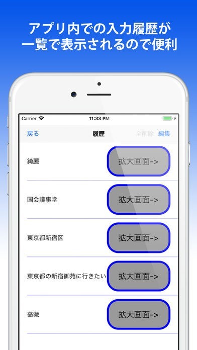App Storeより引用漢字や文字を大きく見たい、入力した文字をズームして見たい等に活用できます。