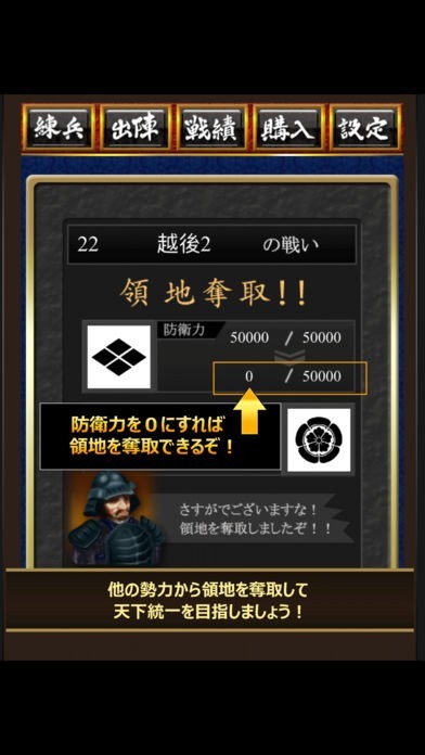 -自分の勢力の領土がなくなると勢力滅亡となり、そのシーズン中は出陣で戦闘に参加できなくなります。次のシーズンまで兵力を集めましょう。無事戦国の世で天下統一をできるか?人気の武将、信長も登場!