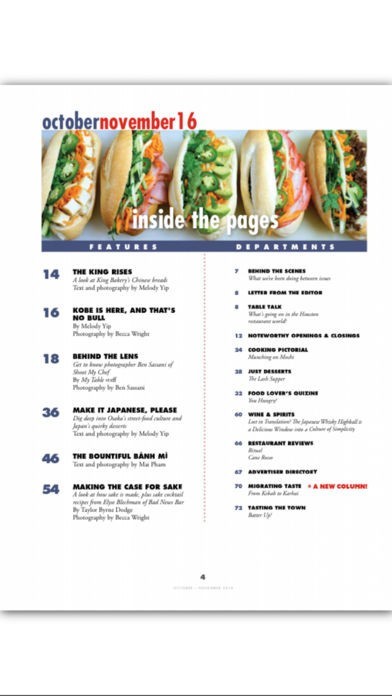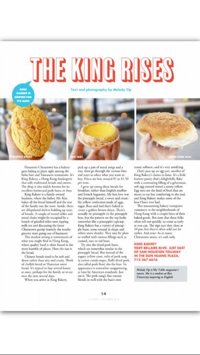 App Storeより引用My Table is a highly specialized digital magazine devoted to the pleasures of cooking and dining out in the greater Houston area. Each bimonthly issue offers readers the most complete information on the restaurants, shops, trends, caterers, farmers’ markets and personalities that make up the city’s lively culinary scene.