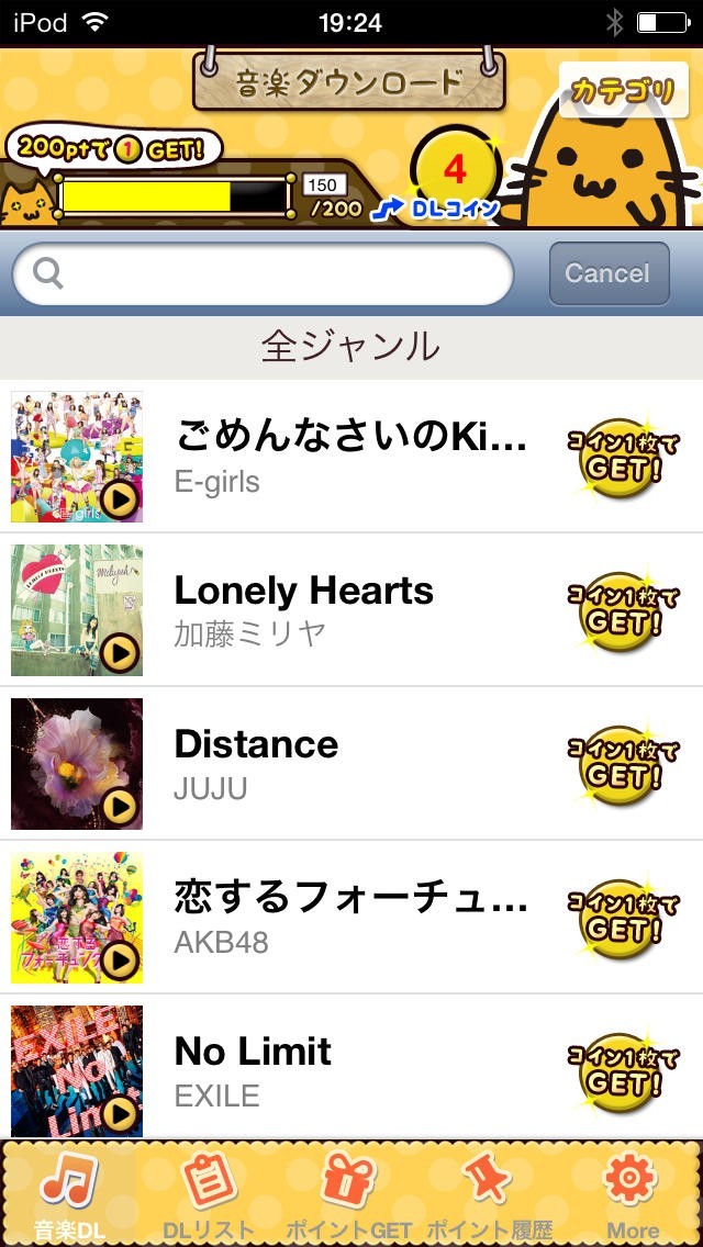 会員登録もなし、完全無料で音楽をダウンロードすることができます。アプリ指定の広告から無料登録するだけでポイントが貯まって、200ポイント貯まったらあとは好きな音楽と交換するだけです。