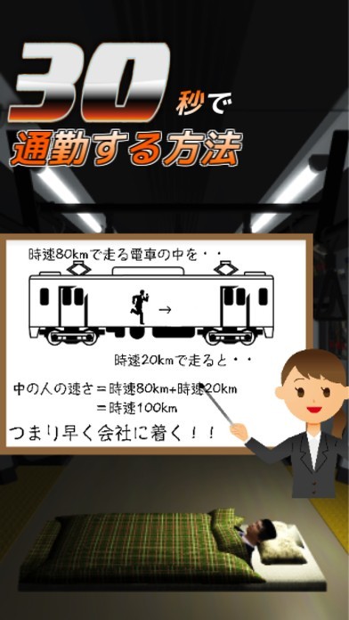 東京で電車を使って通勤、通学している人ならついついあるあるを探しながらプレイしてしまうのが「30秒で通勤する方法〜八王子から東京駅まで〜」です。このアプリは中央線の八王子駅から東京駅までを30秒で通勤することを目的として狭くて人があふれている電車内を駆け抜けていくアクションゲームとなっています。サラリーマンや車内でご飯を食べている人など様々な障害を右に左に画面をタップしながらかわしていきつつ、新聞紙をゲットしてポイントを稼ぐこともできます。