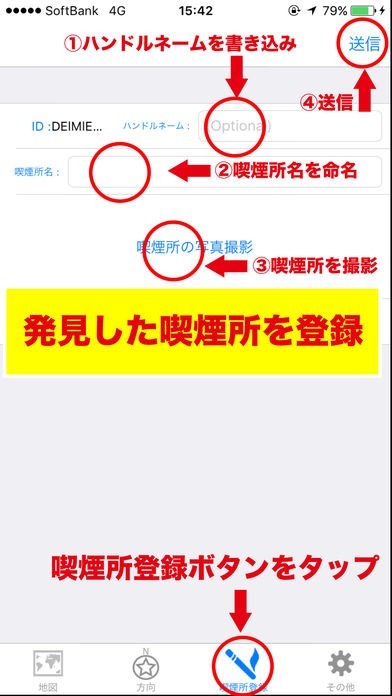 ・自分の近隣のエリアが無くてもユーザー自身で喫煙所登録できるアプリです。