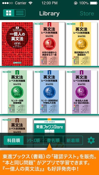 東進が発売する英文法の教科書をアプリで購入して閲覧できるアプリ