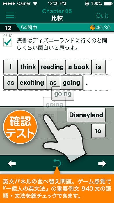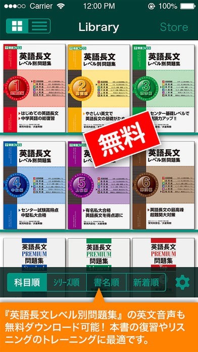 英語を電車内でも学習したいけどノートと教科書を開くのはスペースが足りないし、迷惑がかかると考える学生の方も多いでしょう。「東進ブックスStore」では、東進が発売している英文法の教科書をアプリ内で購入・閲覧が可能なアプリです。またそれだけでなく、英文はネイティヴな音声が聞けるのでリスニング能力を高めたい場合にも有効です。Lvによって冊子が異なるので自分にピッタリの本を選んで学習すればスキルアップもスムーズに進むことでしょう。