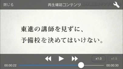 「東進講座受講」は東進の受講者がスマホで授業を再生する際に利用するプレイヤーアプリです。ブラウザ上でログイン後、受講したい授業を選択するとこのアプリが起動され授業を見ることができます。先取り学習や復習、問題演習の解説をスマホで見ることができるので、少し時間が空いたなという時に勉強に時間をまわしたくなるアプリです。