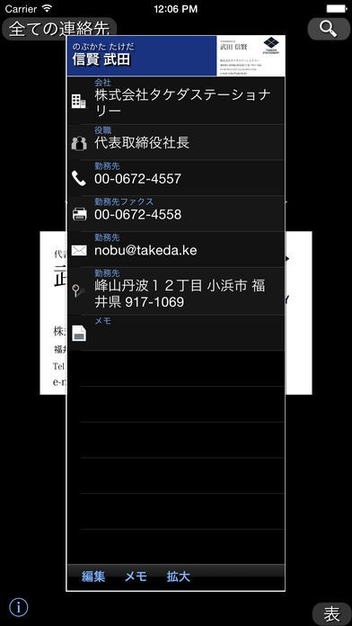 読み取った名刺データをスマートフォンの連絡先に登録することができるようになっているので、スピーディーに取引先などを連絡先に登録することが出来るようになっています。